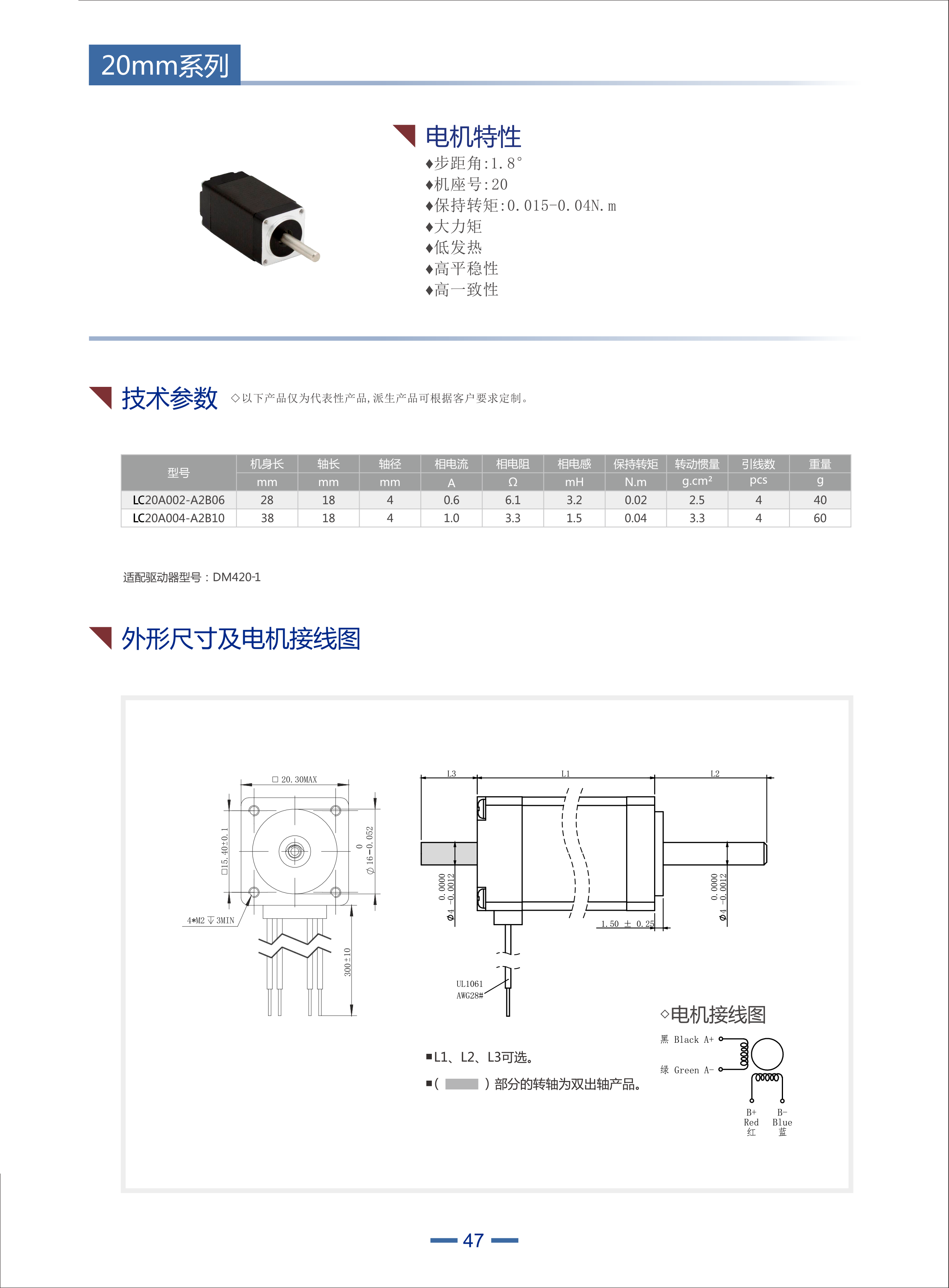 20步進(jìn)電機(jī)特性:步距角:1.8,機(jī)座號:20,保持轉(zhuǎn)矩:0.015-0.04N.m,大力矩低發(fā)熱,高平穩(wěn)性,高一致性