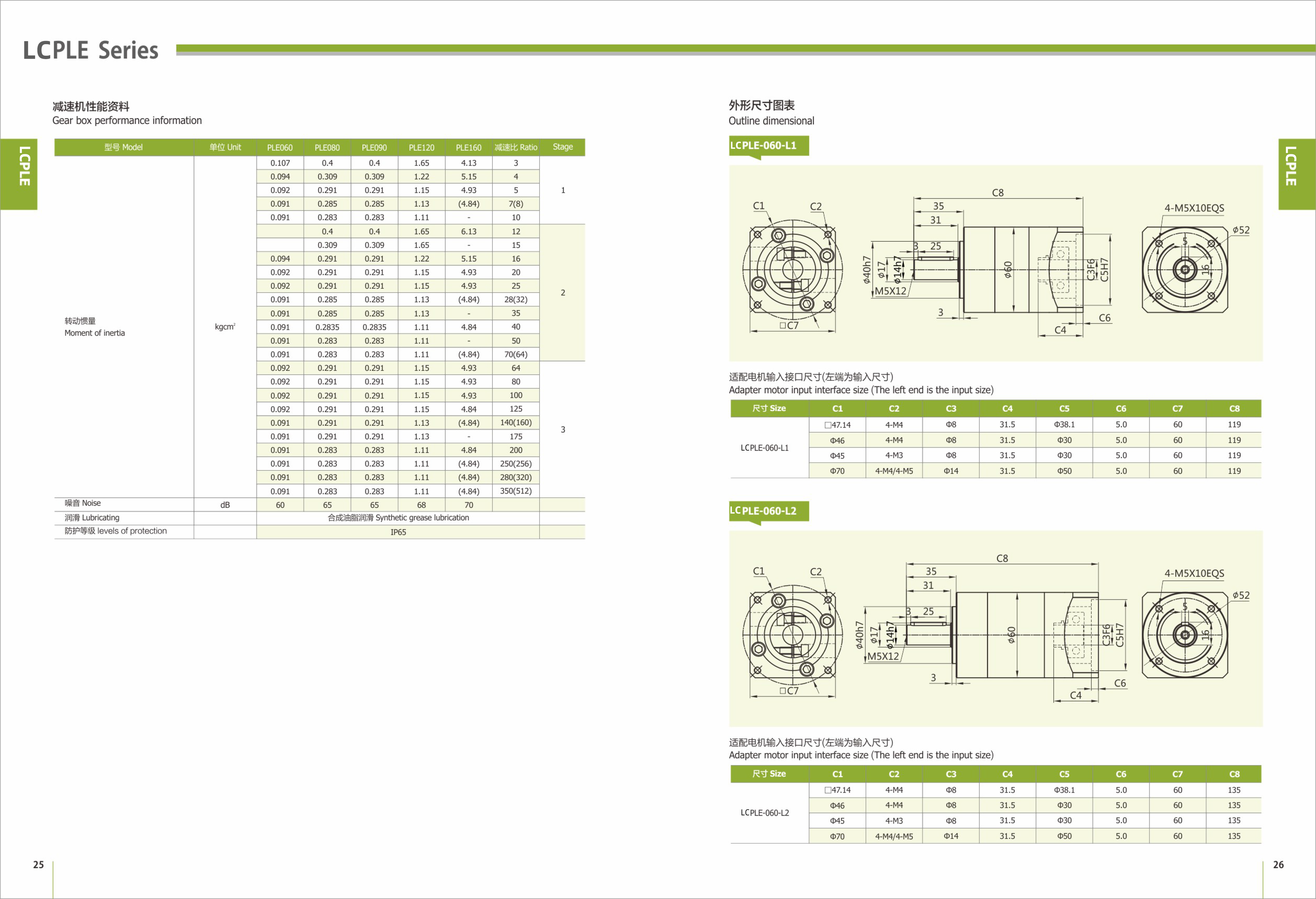 5. 高扭矩:LCPLE系列可以提供高扭矩和低慣量的輸出特性,滿(mǎn)足各種高扭矩和高速度工況的要求。
