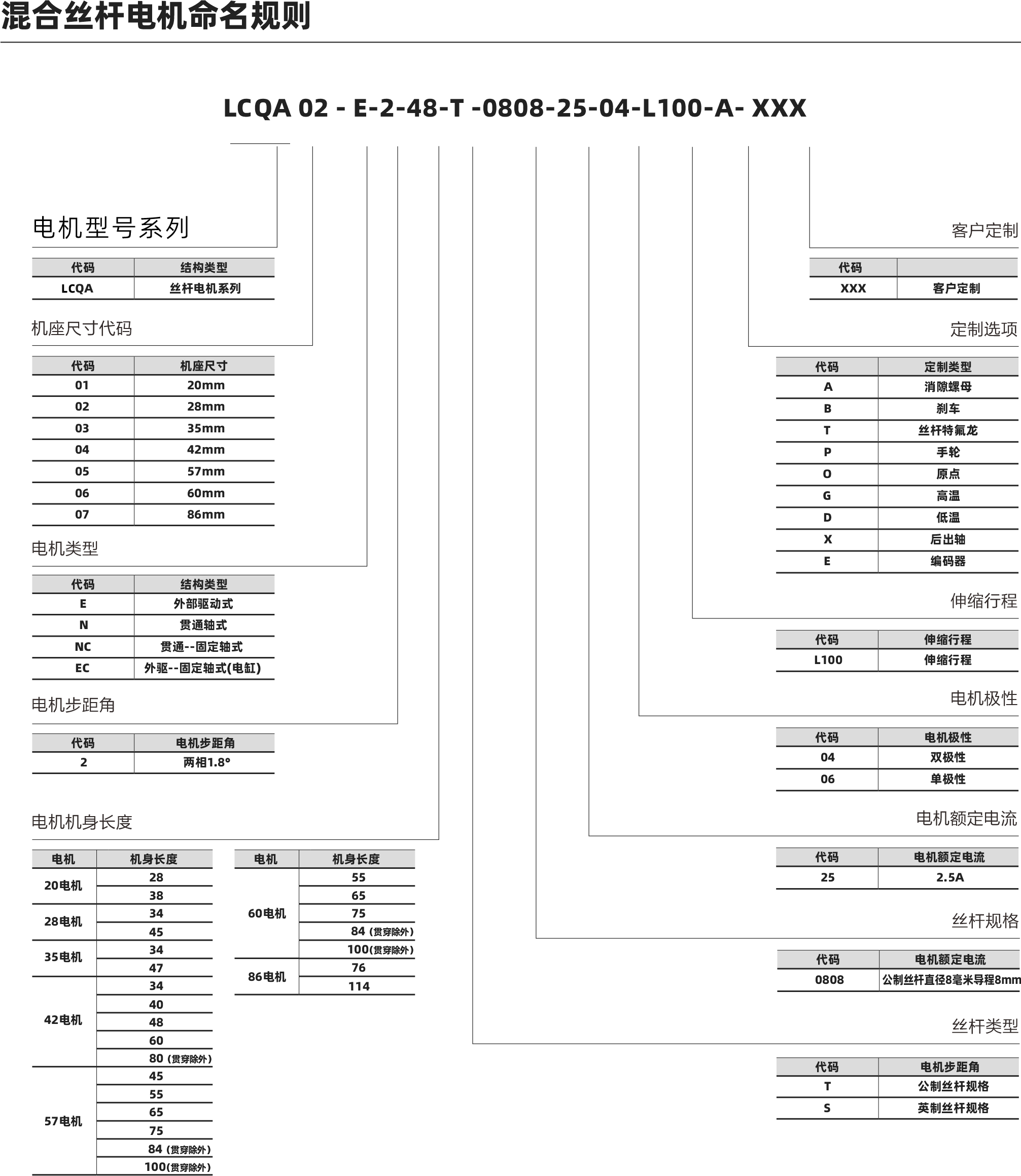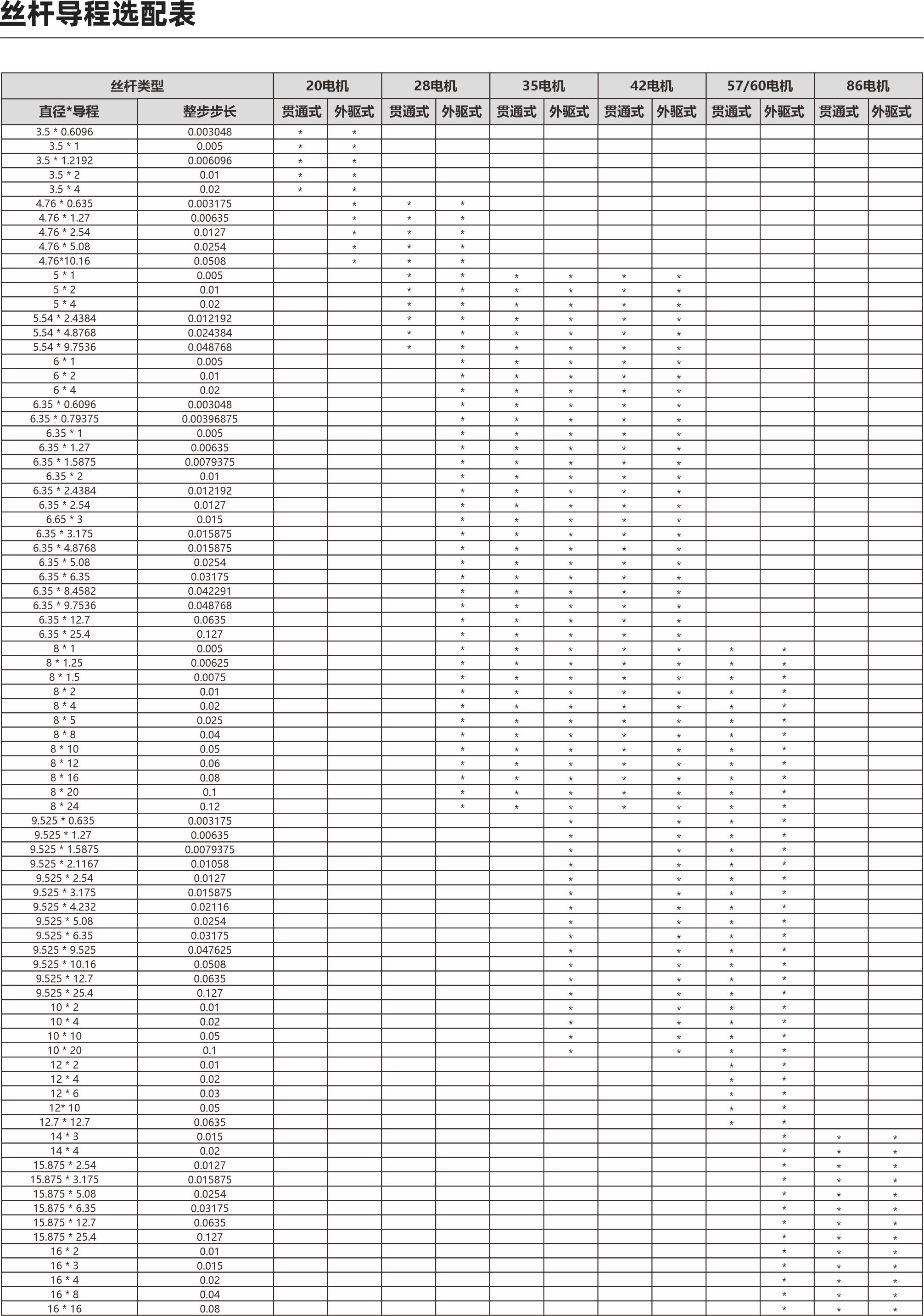 立成全系列外驅(qū)式梯形絲桿電機(jī)命令規(guī)則和型號(hào)參數(shù)一覽表,幫助您快速找到您所需要的絲桿電機(jī)型號(hào),歡迎聯(lián)系我們,為您量身定制。