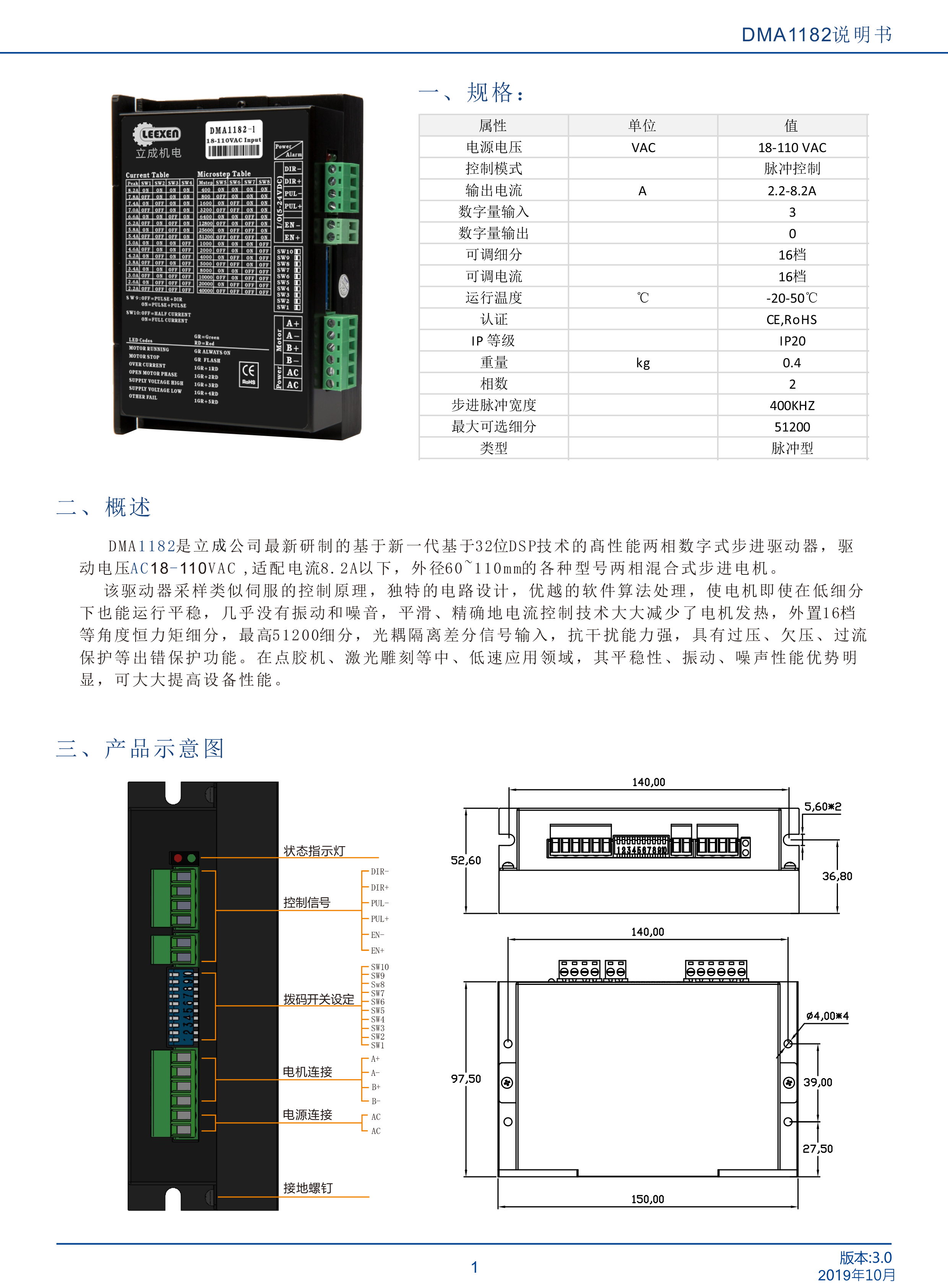 立成機電DMA1182-1交流110V系列步進電機驅動器