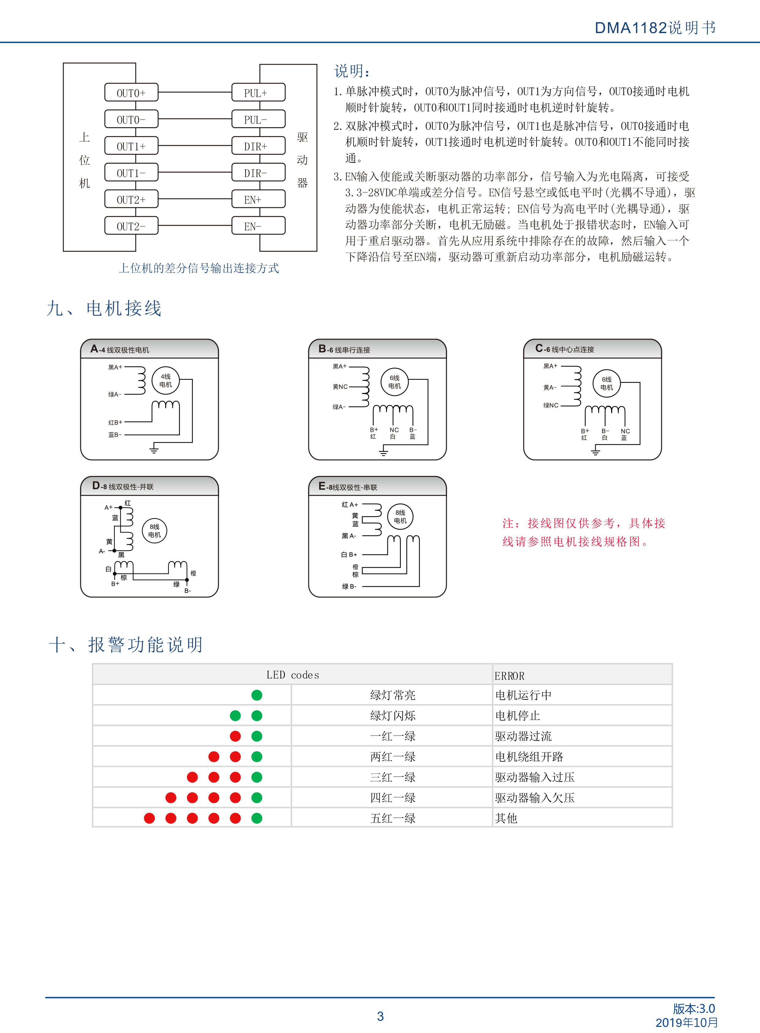 DMA1182是立成公司最新研制的基于新一代基于32位DSP技術的高性能兩相數字式步進驅動器,驅動電壓AC18-110VAC,適配電流8.2A以下,外徑60 110mm的各種型號兩相混合式步進電機。該驅動器采樣類似伺服的控制原理,獨特的電路設計,優(yōu)越的軟件算法處理,使電機即使在低細分下也能運行平穩(wěn),幾乎沒有振動和噪音,平滑、精確地電流控制技術大大減少了電機發(fā)熱,外置16檔等角度恒力矩細分,最高51200細分,光耦隔離差分信號輸入,抗干擾能力強,具有過壓、欠壓、過流保護等出錯保護功能。在點膠機、激光雕刻等中、低速應用領域,其平穩(wěn)性、振動、噪聲性能優(yōu)勢明顯,可大大提高設備性能。